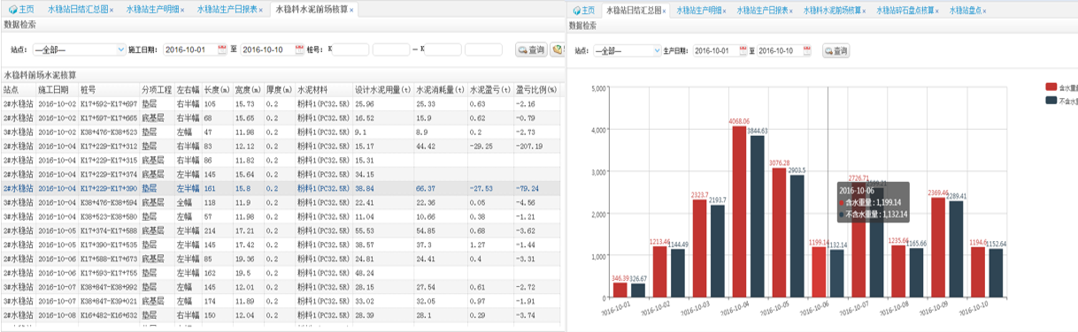 物料核算管理主要包括水穩(wěn)料核算、混凝土核算、瀝青核算、分項(xiàng)工程管理、混合料核算、原材料核算、庫存核算等功能。